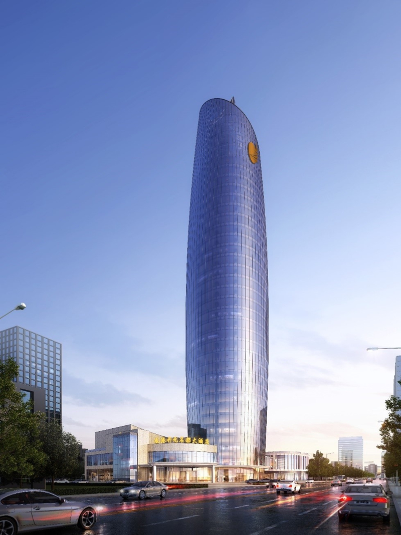 中國電建大灣區科創中心基地位于廣東省廣州市花都區,是由中電建(廣州)城市投資發展有限公司投資開發建設。該項目幕墻形式主要包括玻璃幕墻、鋁板幕墻等,總建筑面積約為62000平方米,幕墻面積38000平方米,建筑高度為162 1米。該項目是一棟超高層辦公樓,建成后將打造成為具備總部基地的地標性建筑。??跒I海新天地商業綜合體 位于海南省??谑?,是由